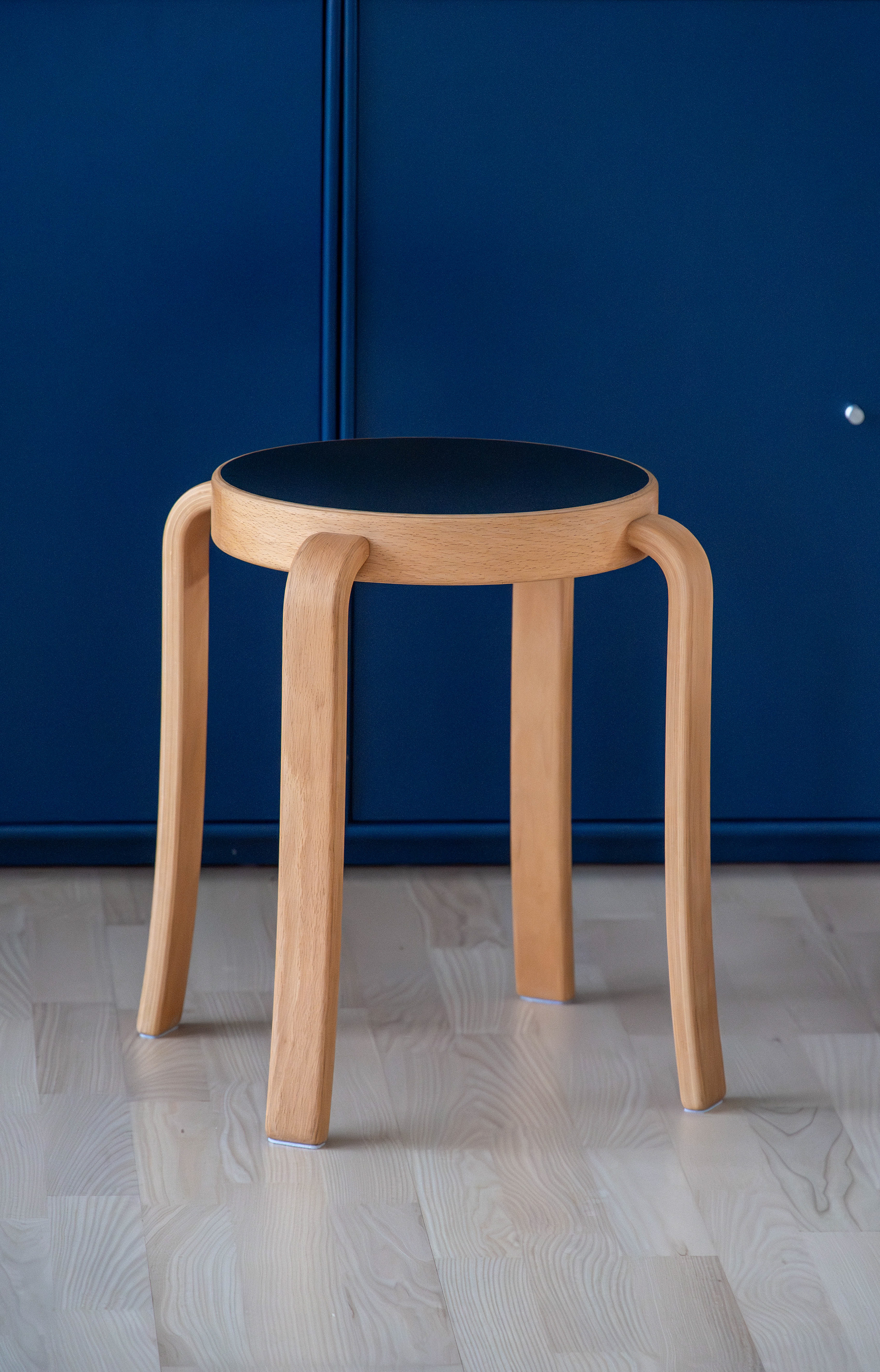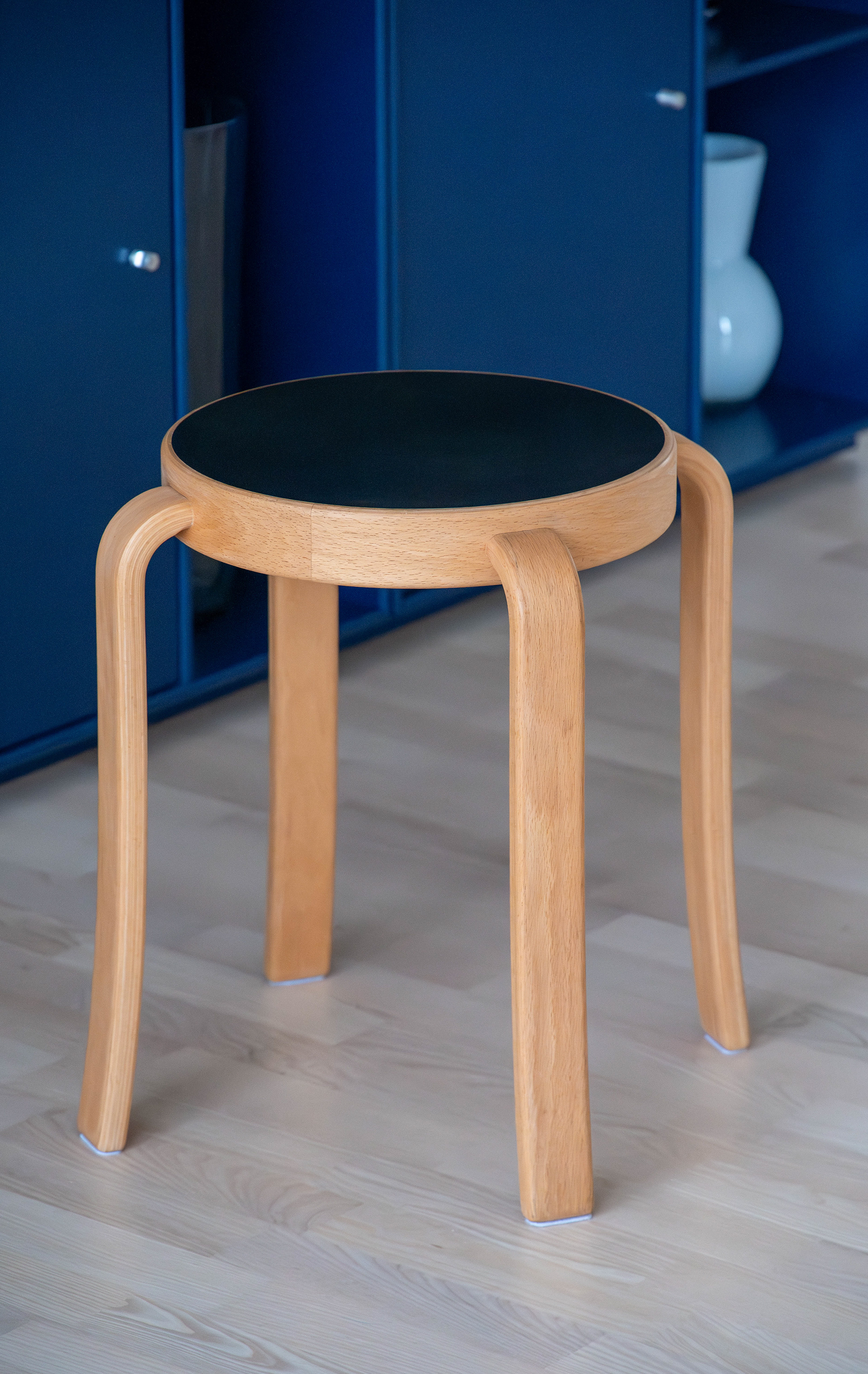 This version is made of molded/pressed beech veneer and has a very strong and light construction with a painted black seat.